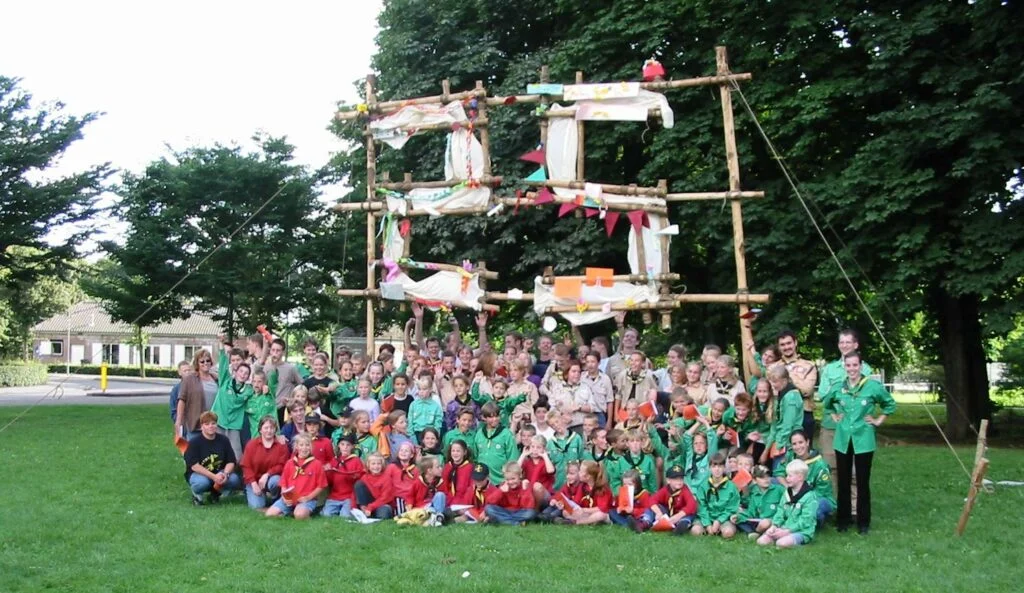 Daarom houden we op zaterdag 13 juni 2026 vanaf 20.00 een reünie voor alle oud-(staf)leden en huidige leiding, bij de blokhut aan de Limietlaan.