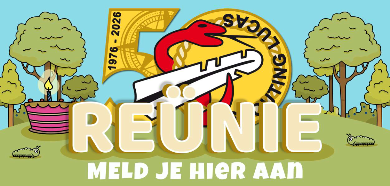 Daarom houden we op zaterdag 13 juni 2026 vanaf 20.00 een reünie voor alle oud-(staf)leden en huidige leiding, bij de blokhut aan de Limietlaan.